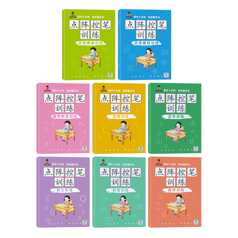 子供用ドットマトリックスペンコントロールトレーニングコピーブック、小学生向けの幼児接続、数字、漢字、ピンイン、英語の部品