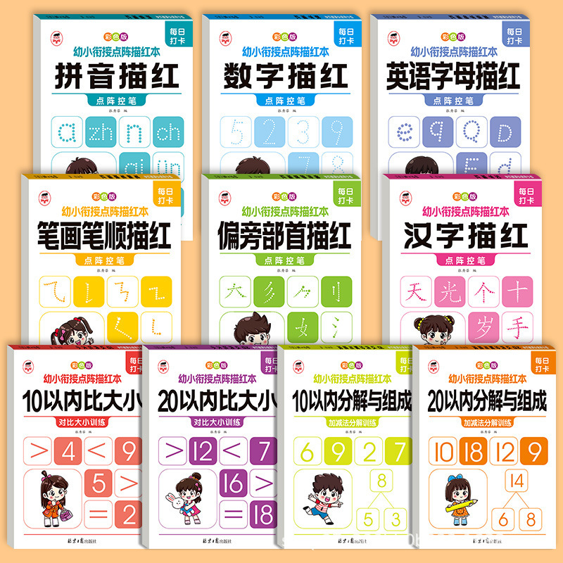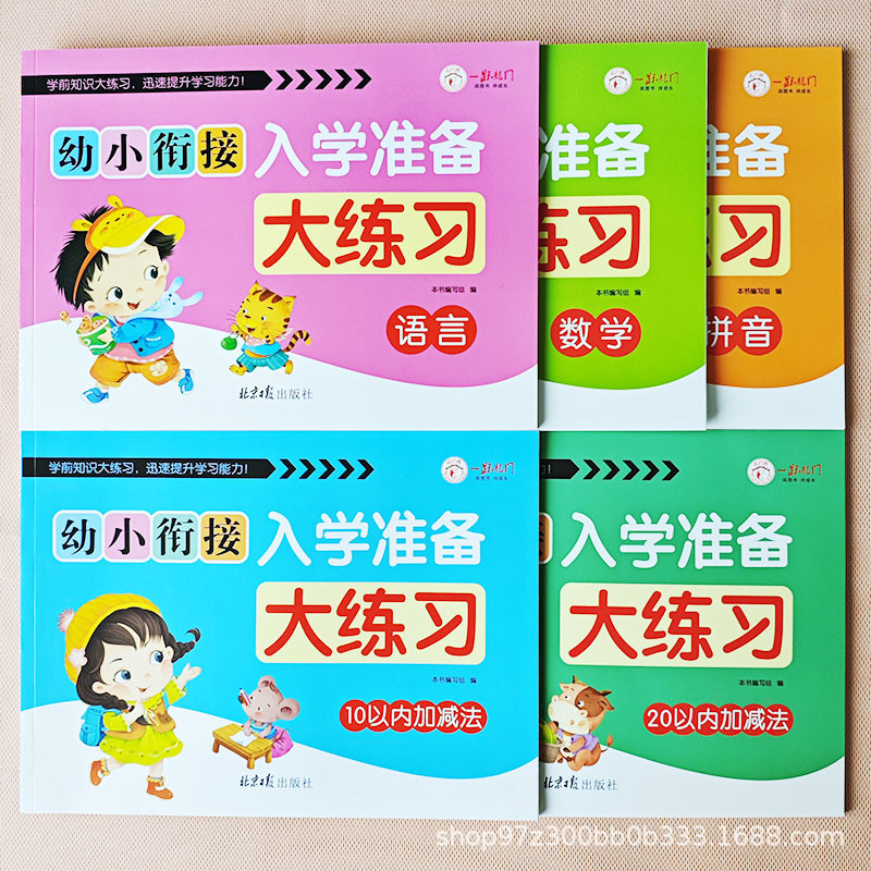 ピンイン幼児から小学校までの赤本、就学前の習字と書き方、幼児から小学校までの数学練習帳、漢字の数字の足し算と引き算