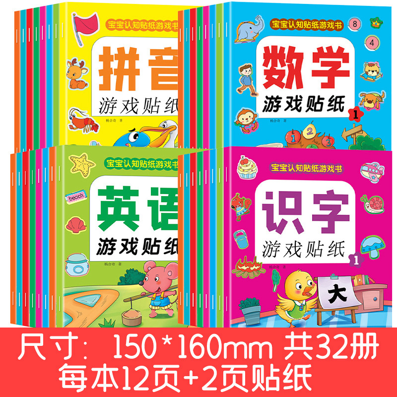 啓蒙知識ベース認知ステッカーブック 2 ~ 3 ~ 6 歳の子供向け英語数学ステッカーピンイン読み書きステッカーブック