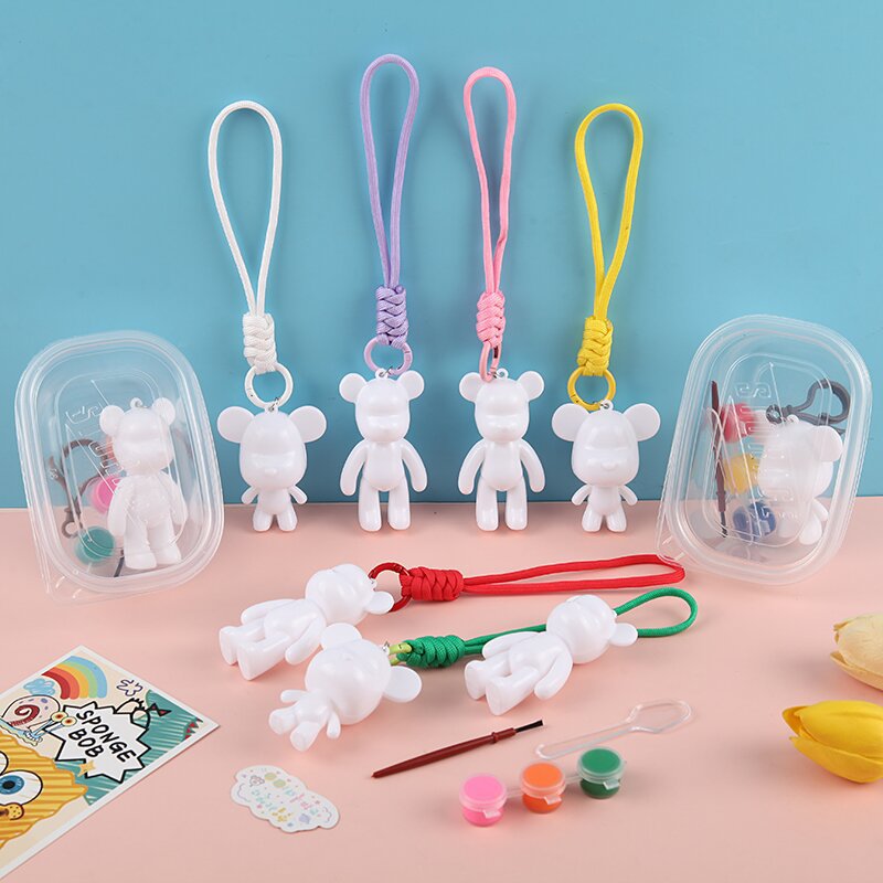 流体暴力クマキーホルダーボックスバッグセット着色キーホルダー樹脂石膏プラスチックキーホルダー卸売