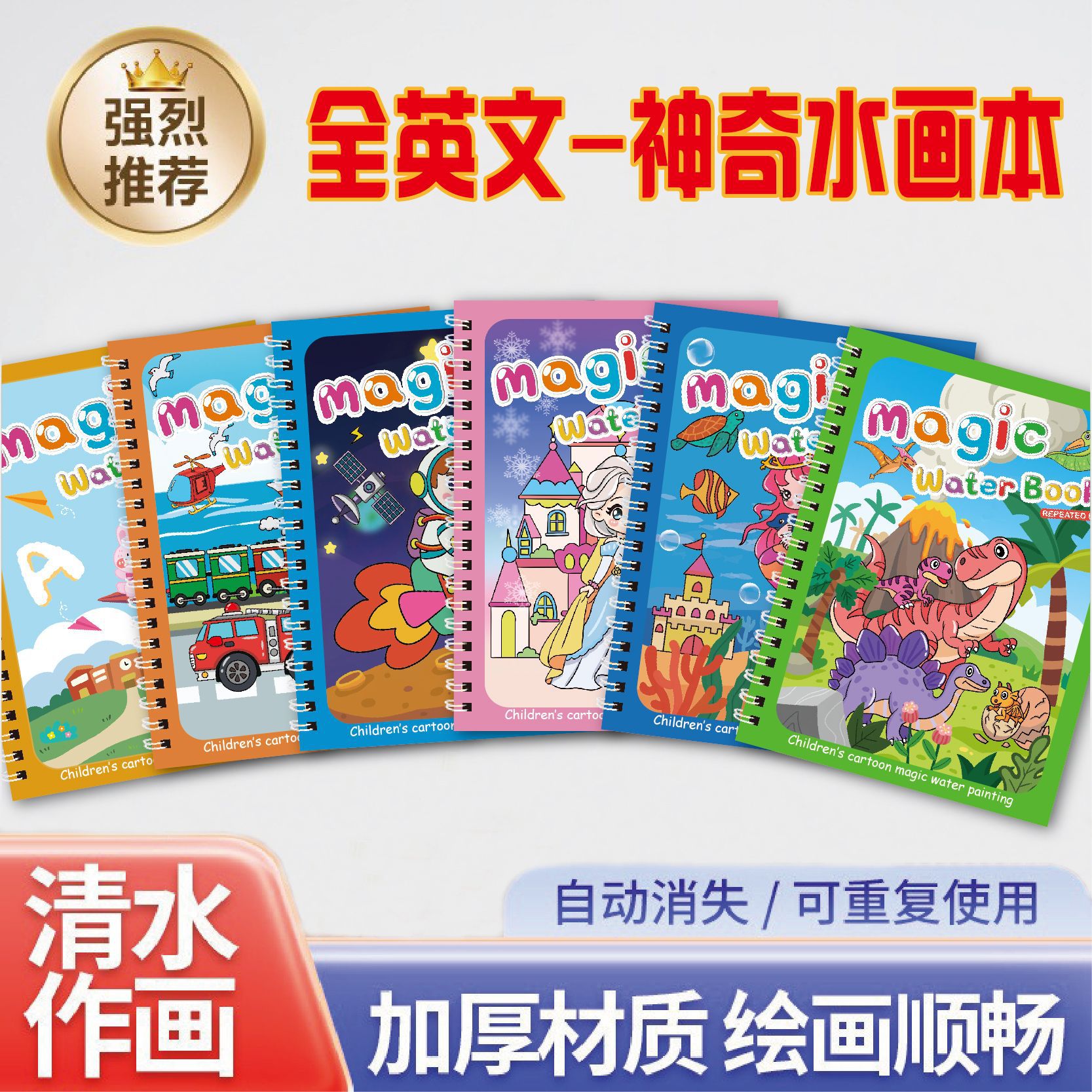 国境を越えたメーカーの完全英語子供用教育魔法の水画帳クリエイティブ水画帳落書き絵本クリアウォーター絵画