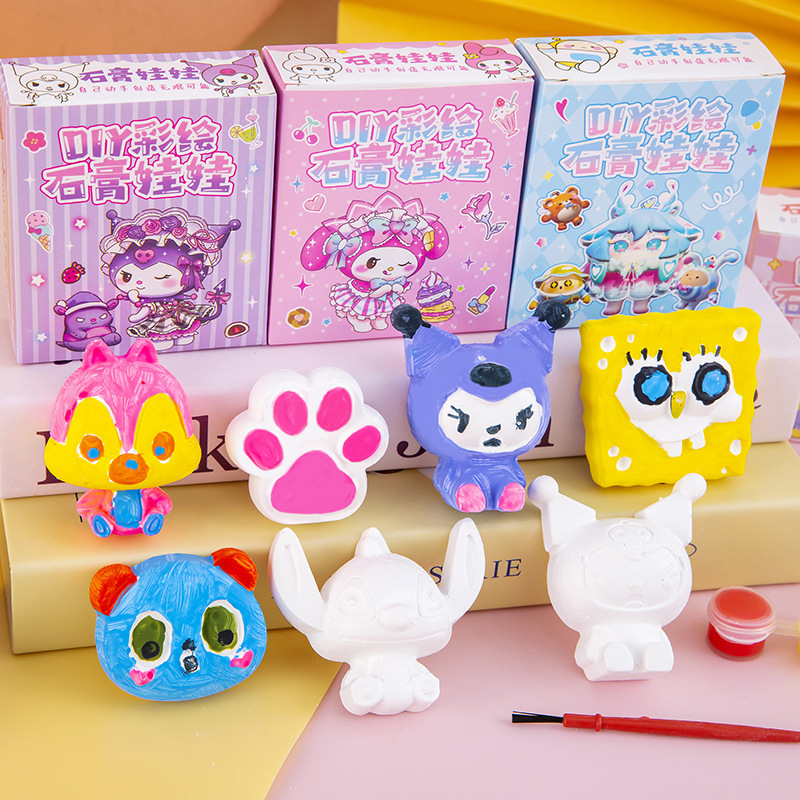 インターネット有名人かわいい石膏人形着色おもちゃ子供のミニ塗装染色白胚漫画 diy 立体人形