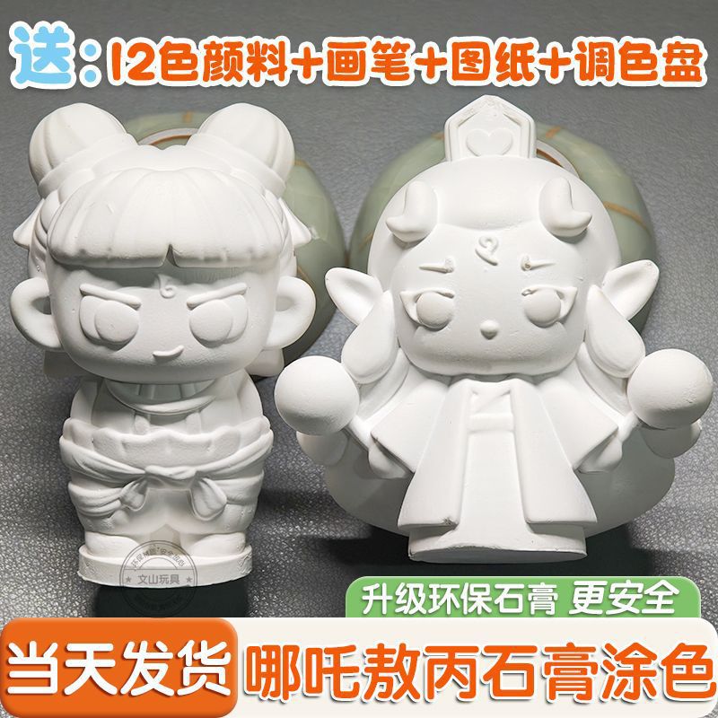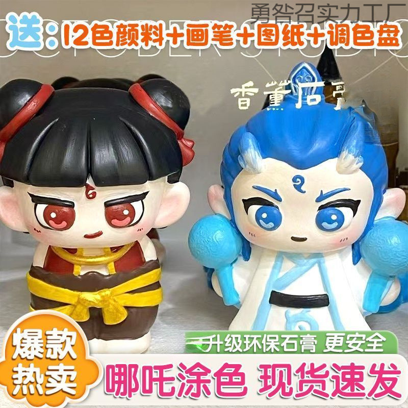 ネザ石膏人形着色 Ao Bing Nezha 立体 3D 子供 DIY おもちゃ塗装落書き白胚手作り