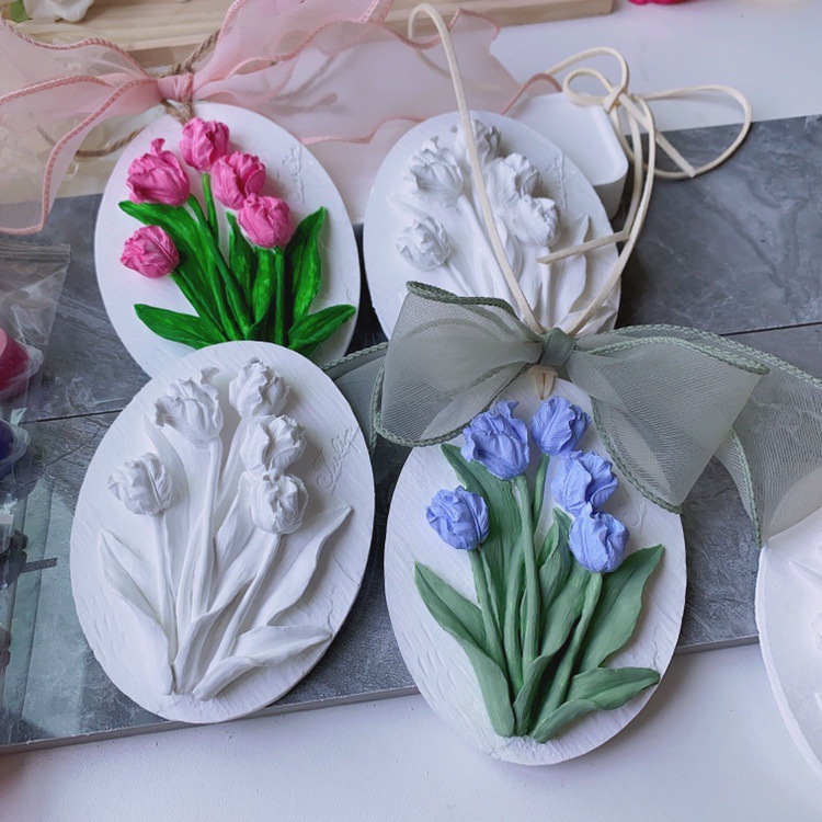 DIY アロマセラピー石膏塗装ペンダントチューリップフラワーカード白ブランクストール着色小さなギフトおもちゃ