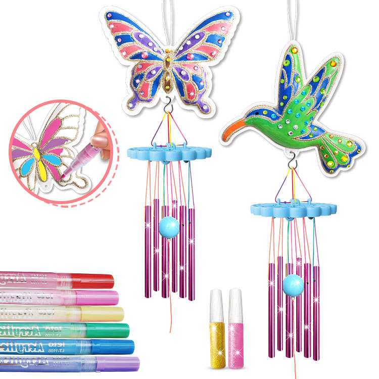 子供の手作りの絵diy落書き皮革動物風鈴の色を塗る図案の絵の蝶の皮革はおもちゃを飾ります。