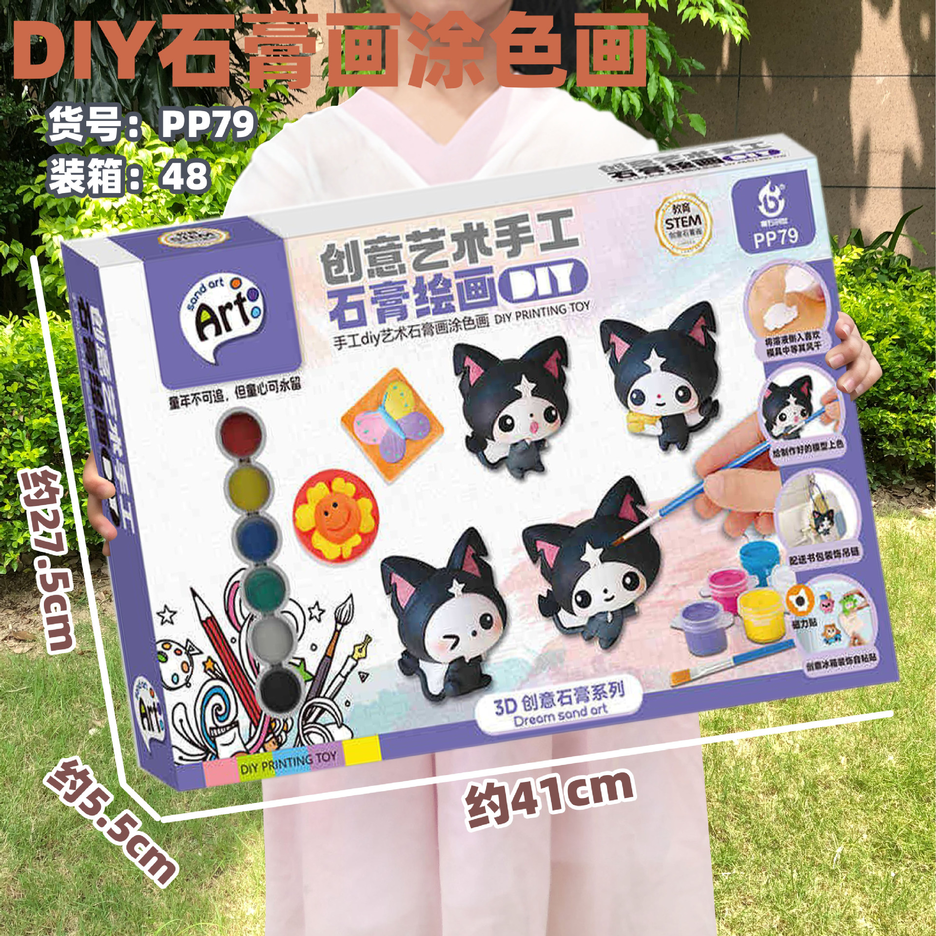 石膏人形手作りdiy3D吉吉猫白胚絵画彩色子供塗装落書き玩具人形