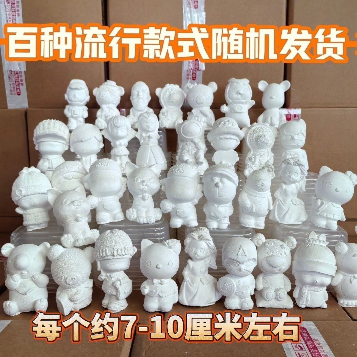 DIY石膏人形のロットは絵の具付きの白地を持っています。