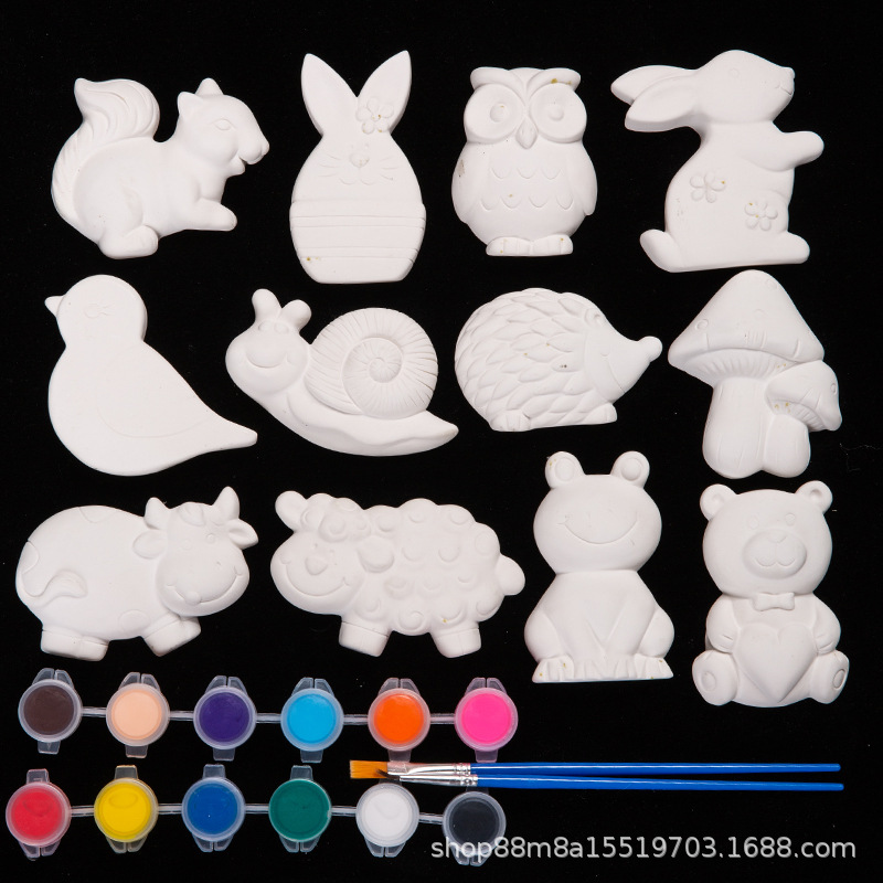 クロスボーダー子供手作りdiy落書き絵画白地着色石膏人形セット知育玩具プレゼント