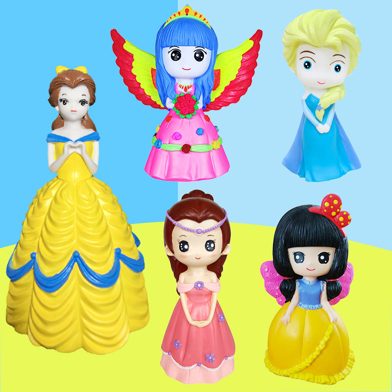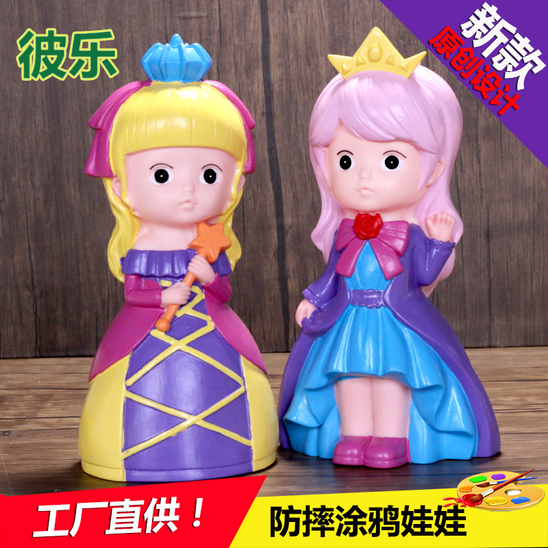 子供用の色塗りのゴム人形diy手作りの絵の王女の貯金箱のゴムの白胚の露店のおもちゃ