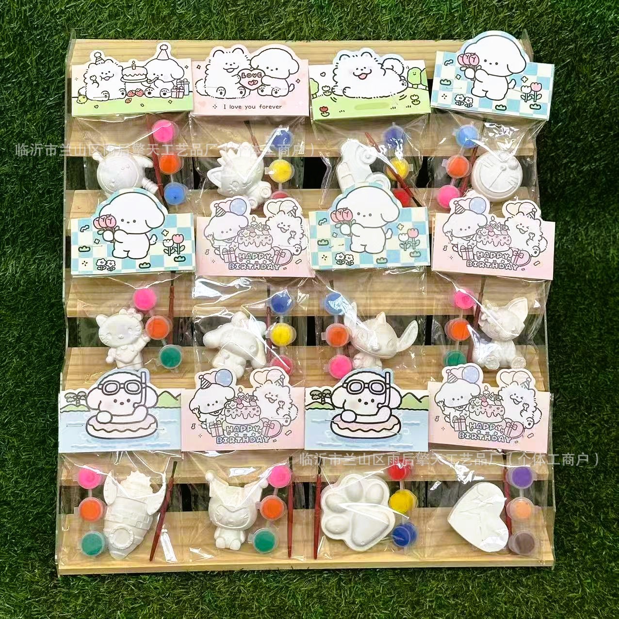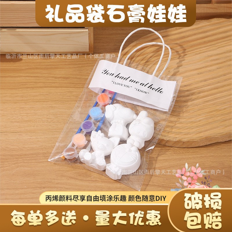 手提げ袋入り小型石膏人形、卸売、塗料付き白胚、塗り絵ギフト、夜市屋台、子供向け知育玩具