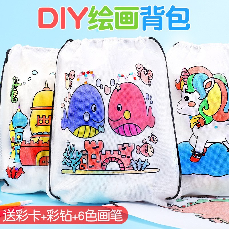 子供の落書きのキャンバスのリュックサックdiyの絵画のキャンバスの袋の空白は色の手作りの材料を塗ります。