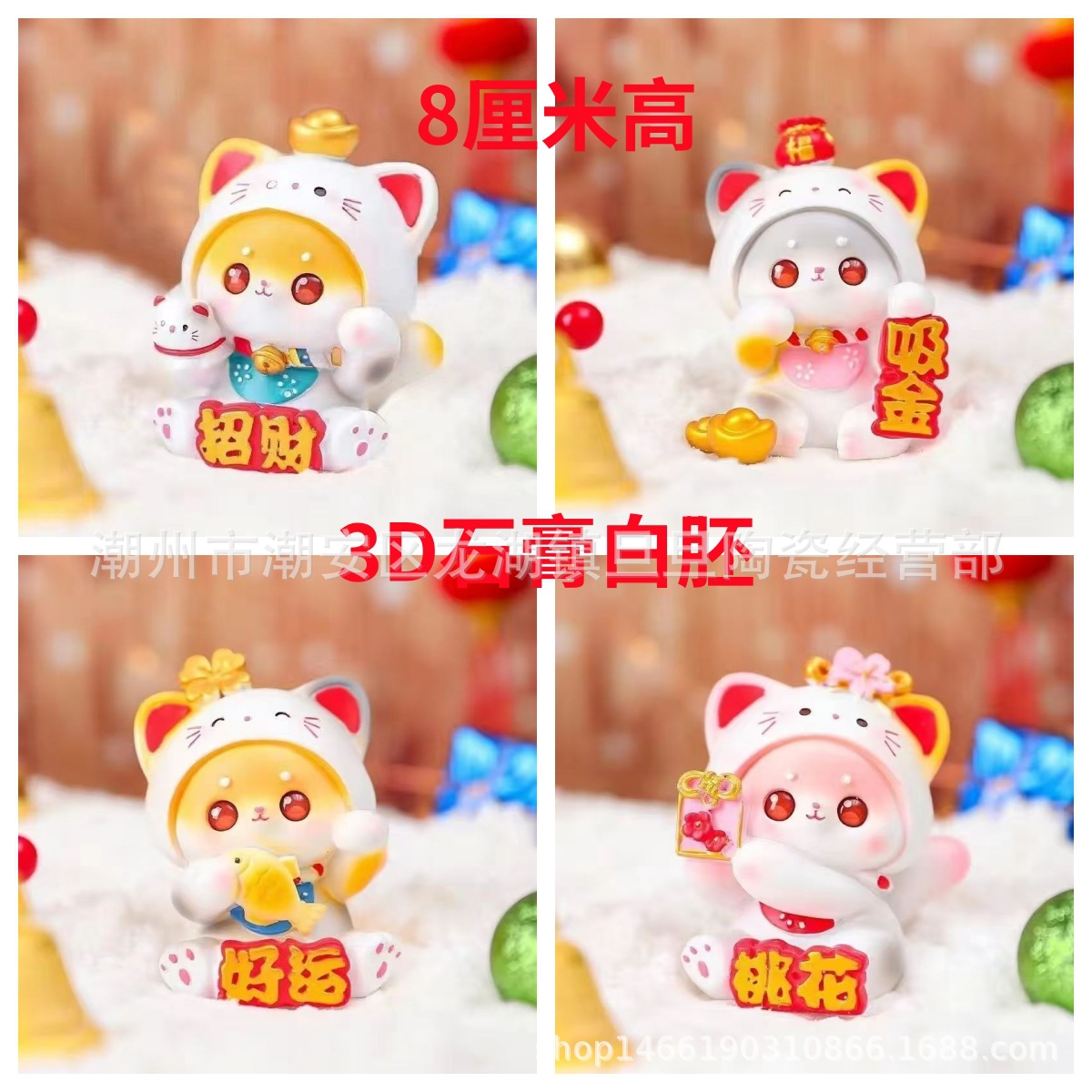 石膏人形白胚招財セットDIY落書き置物着色石膏彩色幼稚園知育玩具