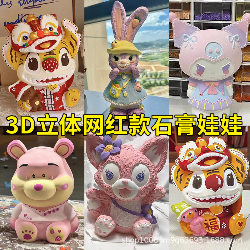 蒸籠3d立体石膏人形白胚彩色漫画ネット赤石膏落書き塗り益智手作り玩具