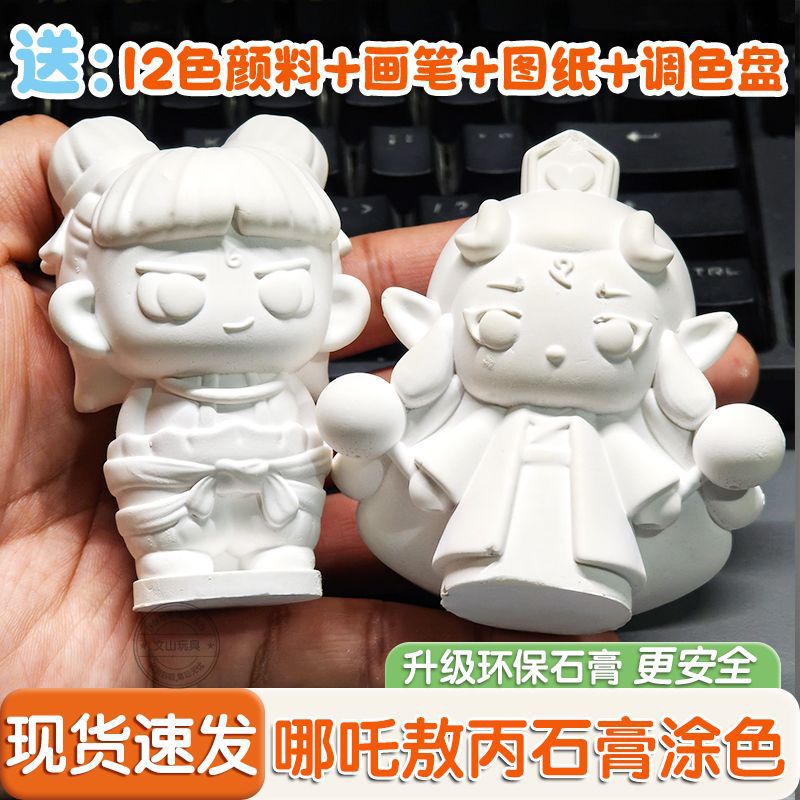 ネザ石膏人形着色 Ao Bing Nezha 立体子供のおもちゃ塗装落書き白胚手作り