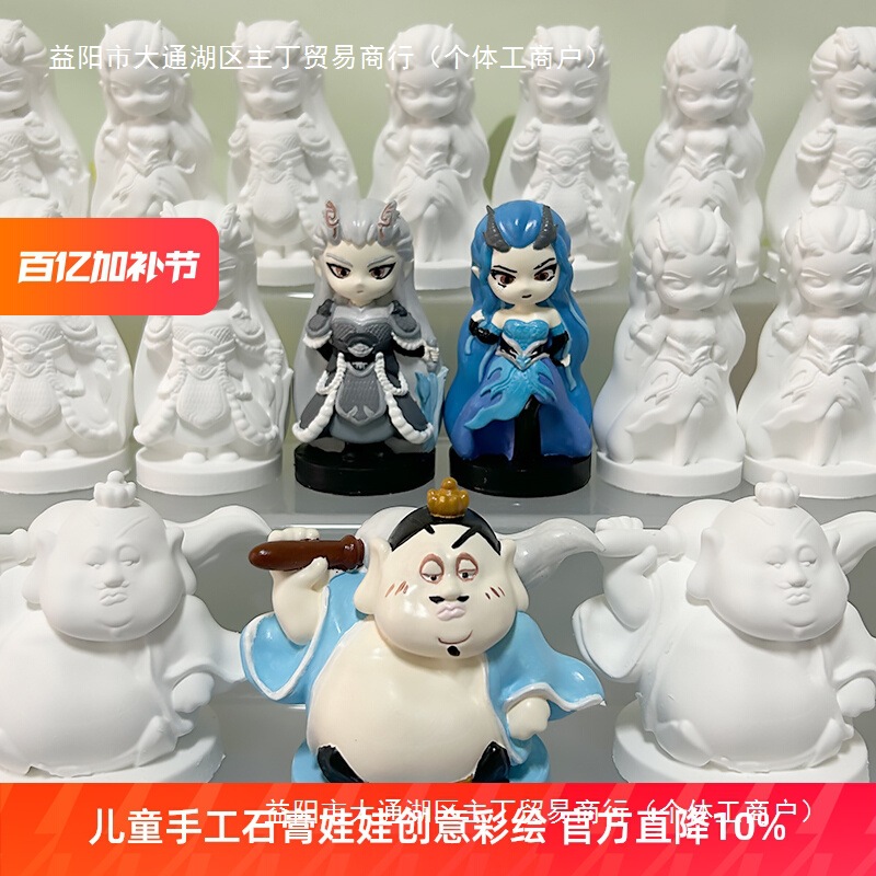 ネット赤爆金石膏人形塗装玩具児童ミニ彩色白胚diy立体公仔手作り亮油