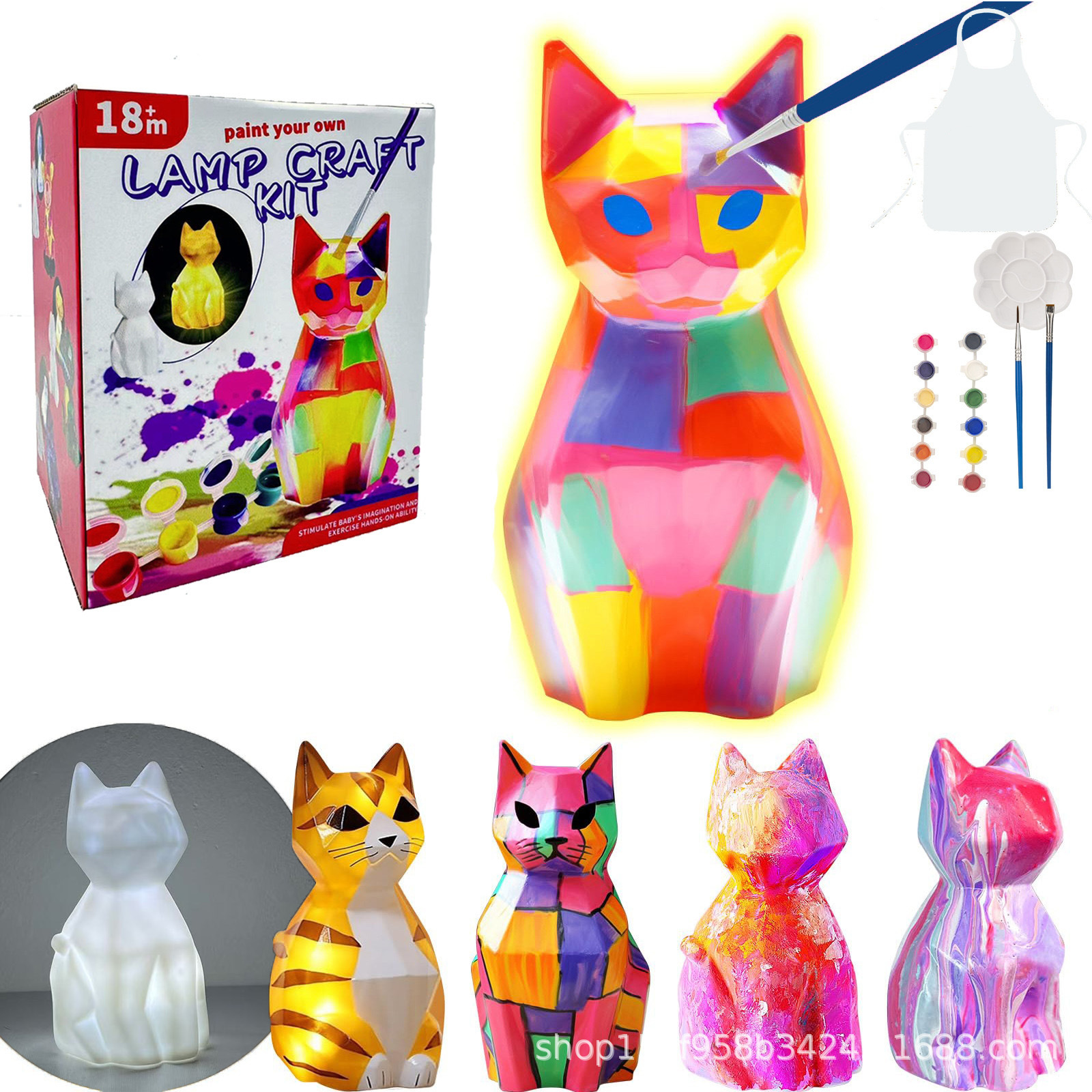 クロスボーダー DIY 絵画教育早期教育おもちゃ猫白胚手描き落書き絵画ナイトライト子供の夜の光