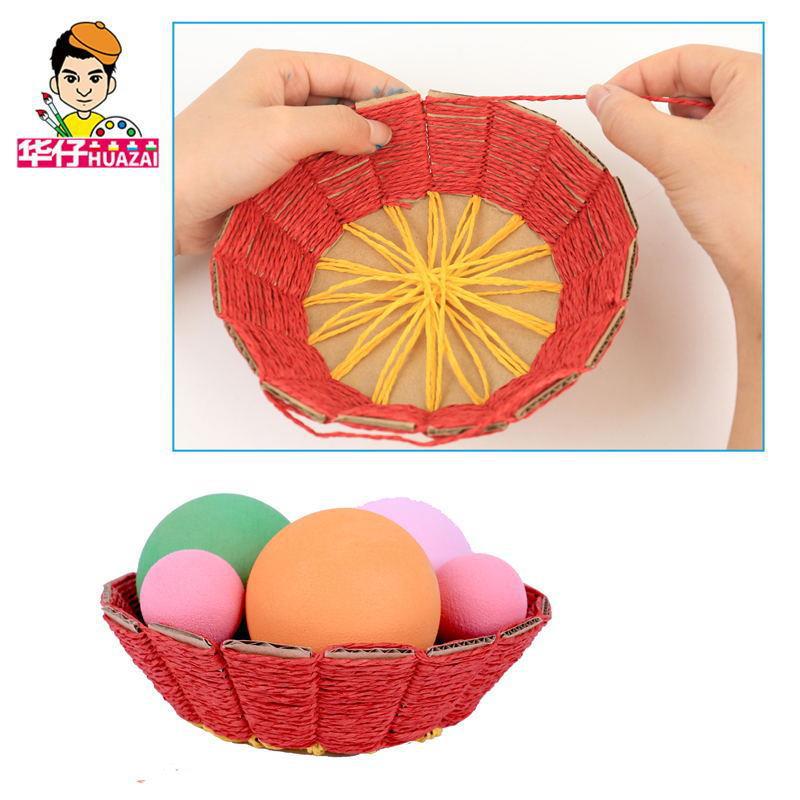紙のひもの紙のカードは花のかごの幼稚園の子供を編みます。