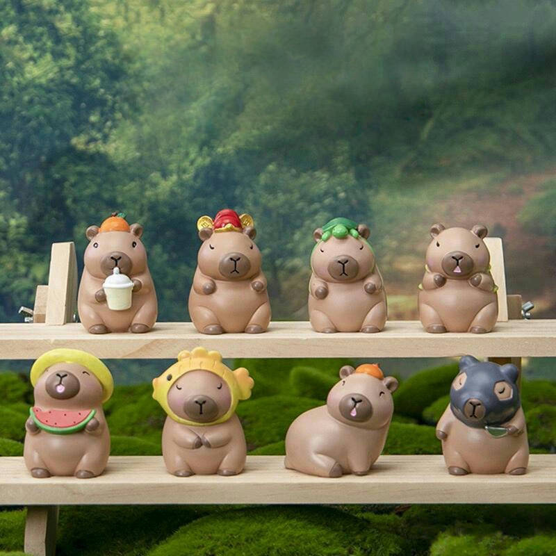 かわいいインゲンマメの情緒のカピバラの白い胚の石膏の人形の潮は置物の漫画のデスクトップのカピバラのフルセットの贈り物を遊びます。