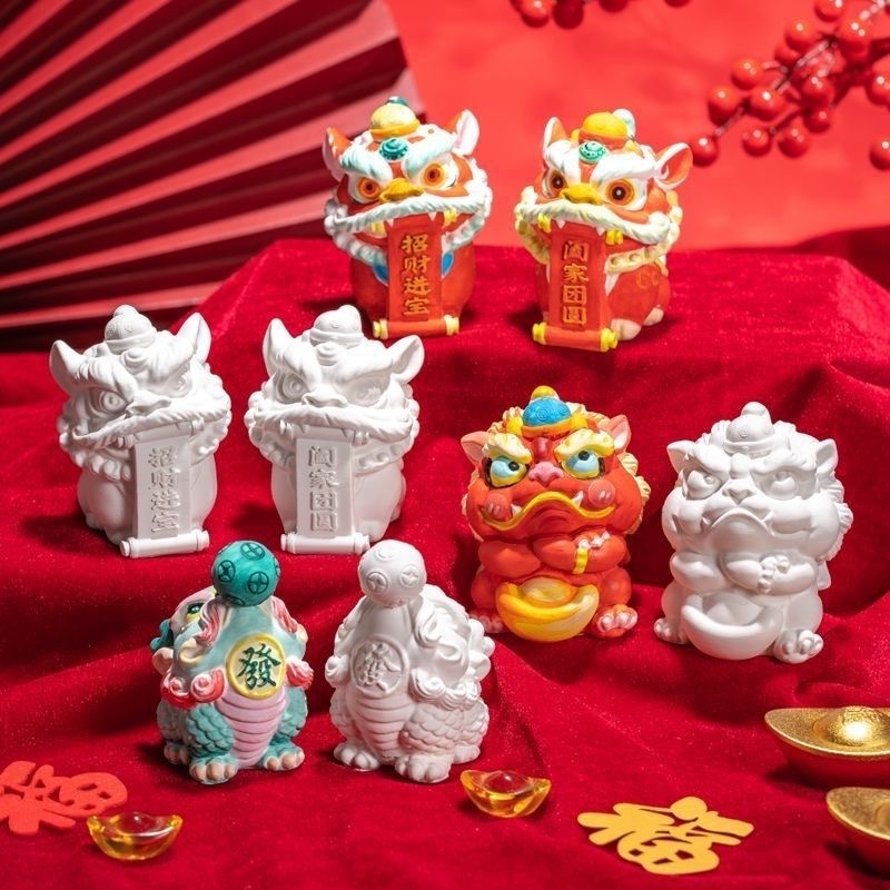 新型diy舞獅子石膏人形塗装色白胚吉祥輸送瑞獣置物中国風3d立体可愛い