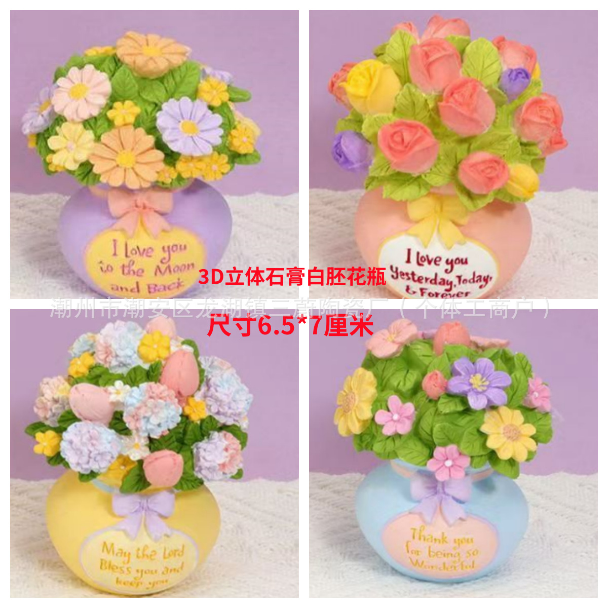 香薫立体石膏人形白胚花瓶DIY塗装菊バラ子供手塗り置物