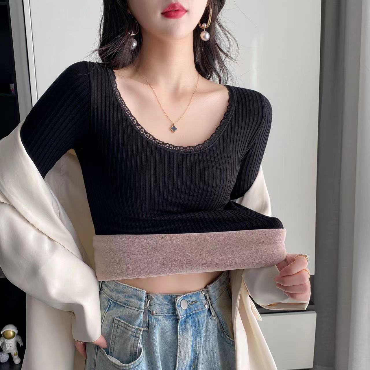 子羊の毛の保温の上着の女性の冬の新型のベルベットは厚い内に秋の服の弾力性の修身の底のシャツの下着の潮を掛けます。