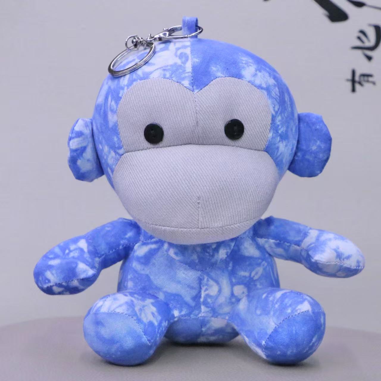 卸売りの染め人形の置物の手作りの青い染めのぬいぐるみの完成品の子供のおもちゃは彼女にサルを染めます。