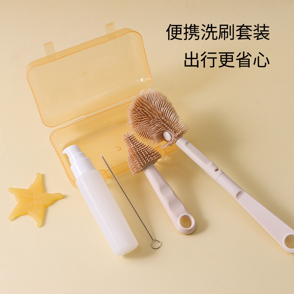 国境を越えて人気の携帯シリコン哺乳瓶ブラシセット乳首赤ちゃん専用哺乳瓶洗浄ブラシ付き収納ケース