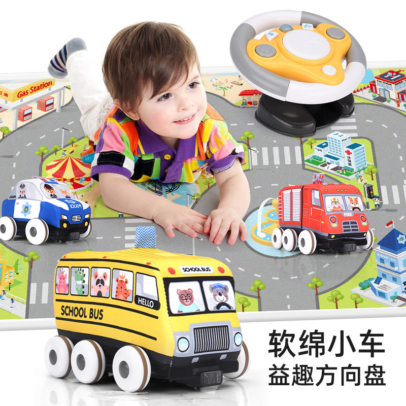 子供の早教の新商品のおもちゃの車の赤外線のリモコンの布車の多機能のハンドルの益智の赤ちゃんの爬行パッド