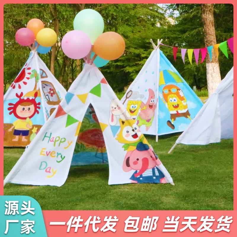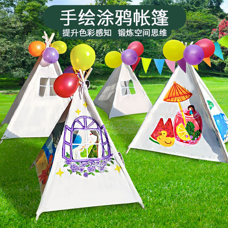 子供diy落書き手描きテント空白絵画手作り三角テント屋外活動絵遊び屋