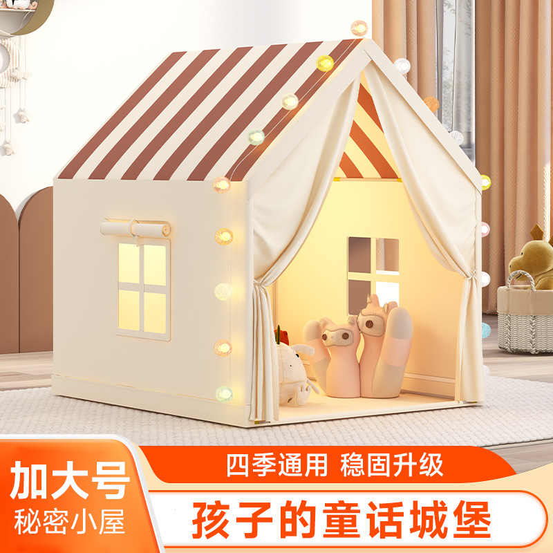 大スペース子供用テントポータブル屋内男の子と女の子のプレイハウス城小さな家ライトベージュシングルテント