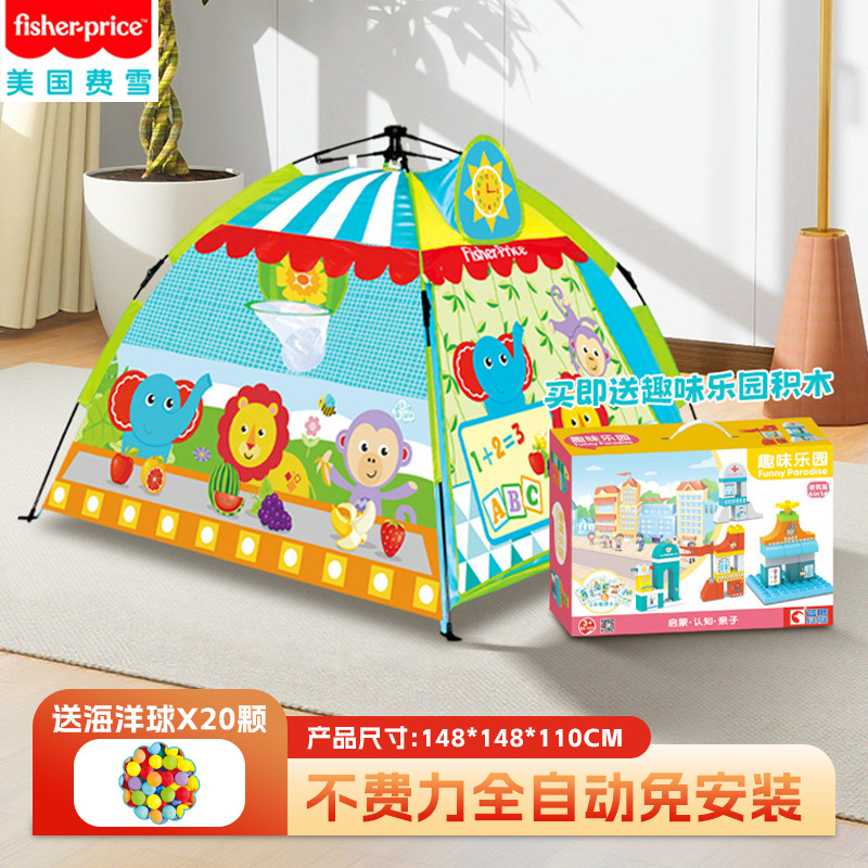フィッシャープライス 子供用テント 室内 家庭用 全自動展開 設置不要 日よけ アウトドア キャンプ 男の子 女の子 ゲームハウス
