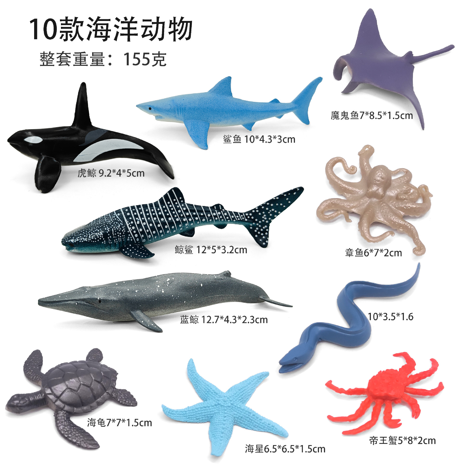 中号10種海洋動物シミュレーションモデルソフト子供玩具帝王蟹魚海星シロナガスクジラサメ