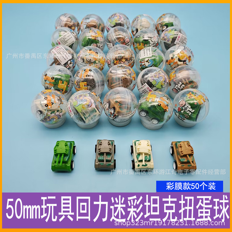 50mmねじり卵戦車回力車七彩楽園ゲーム機工事家族2元小プレゼント透明ボール卸売り