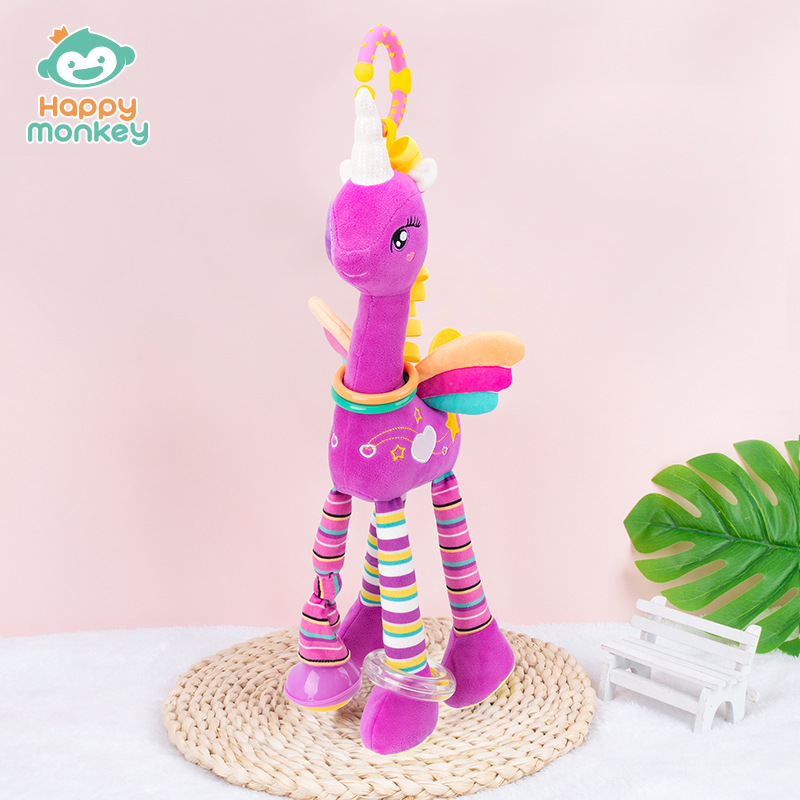Happy monkeyの赤ちゃんのおもちゃのポニーの漫画の立体のカートのペンダントのベッドのベルのベルの赤ちゃんはおもちゃをなだめます。