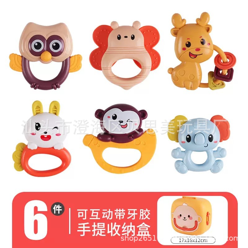 越境してよく売れている赤ちゃんの鈴のおもちゃ新生児の赤ちゃんは柔らかいゴムの手を握って鈴の収納箱のギフトボックスのセットを揺ります。