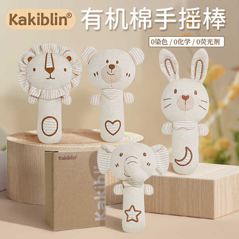 Kakiblin有機綿ハンドロック赤ちゃんグリップトレーニングbbスティック乳幼児用なだめるハンドベル玩具卸売
