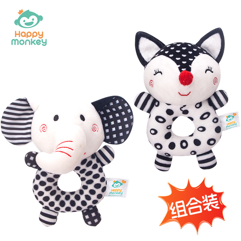Happy monkey新生児手鈴赤ちゃん玩具鈴赤ちゃん白黒玩具キツネ象鈴