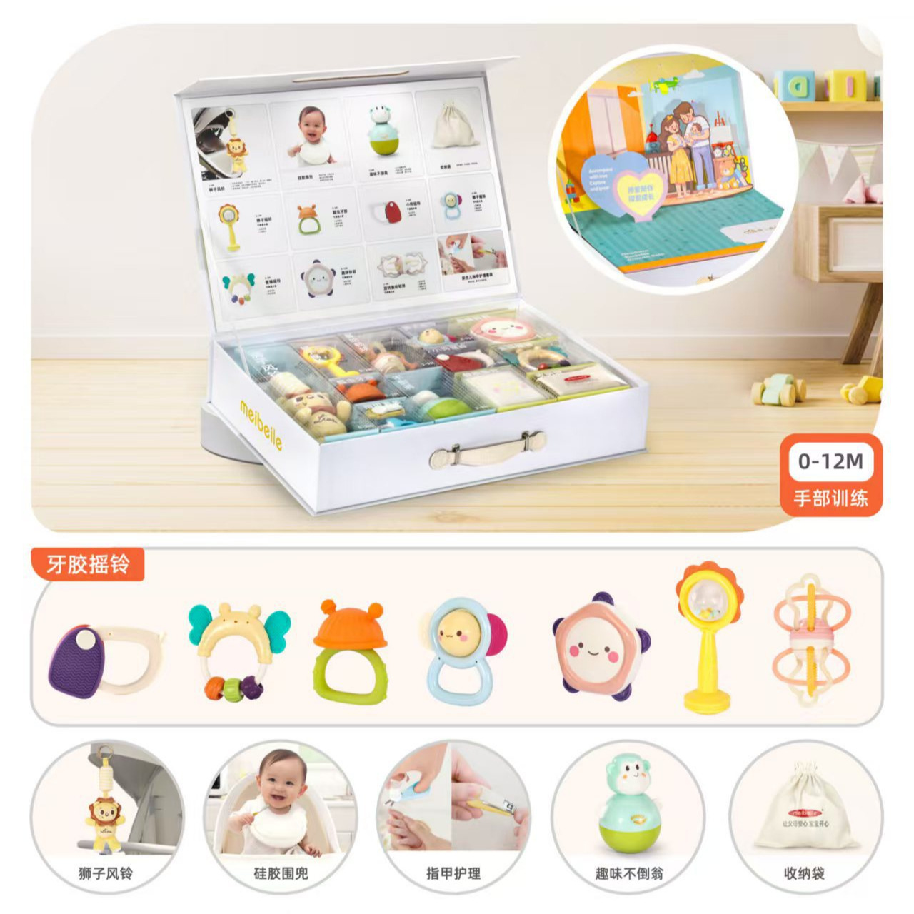 Meibeile 0353 新生児セット幼児ガラガラなだめるギフトボックス 0-3-18 ヶ月赤ちゃん満月おもちゃ