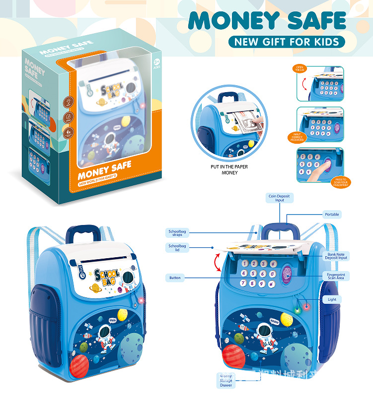 指紋宇宙カバン貯金箱恐竜リュックサック貯金箱自動巻き貨幣男女子供玩具