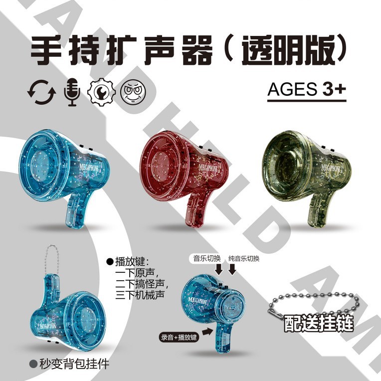 ガラスハンドヘルドアンプレコーダーキーホルダークリエイティブ小型スピーカーおもちゃバッグスクールバッグキーペンダント小さなギフト