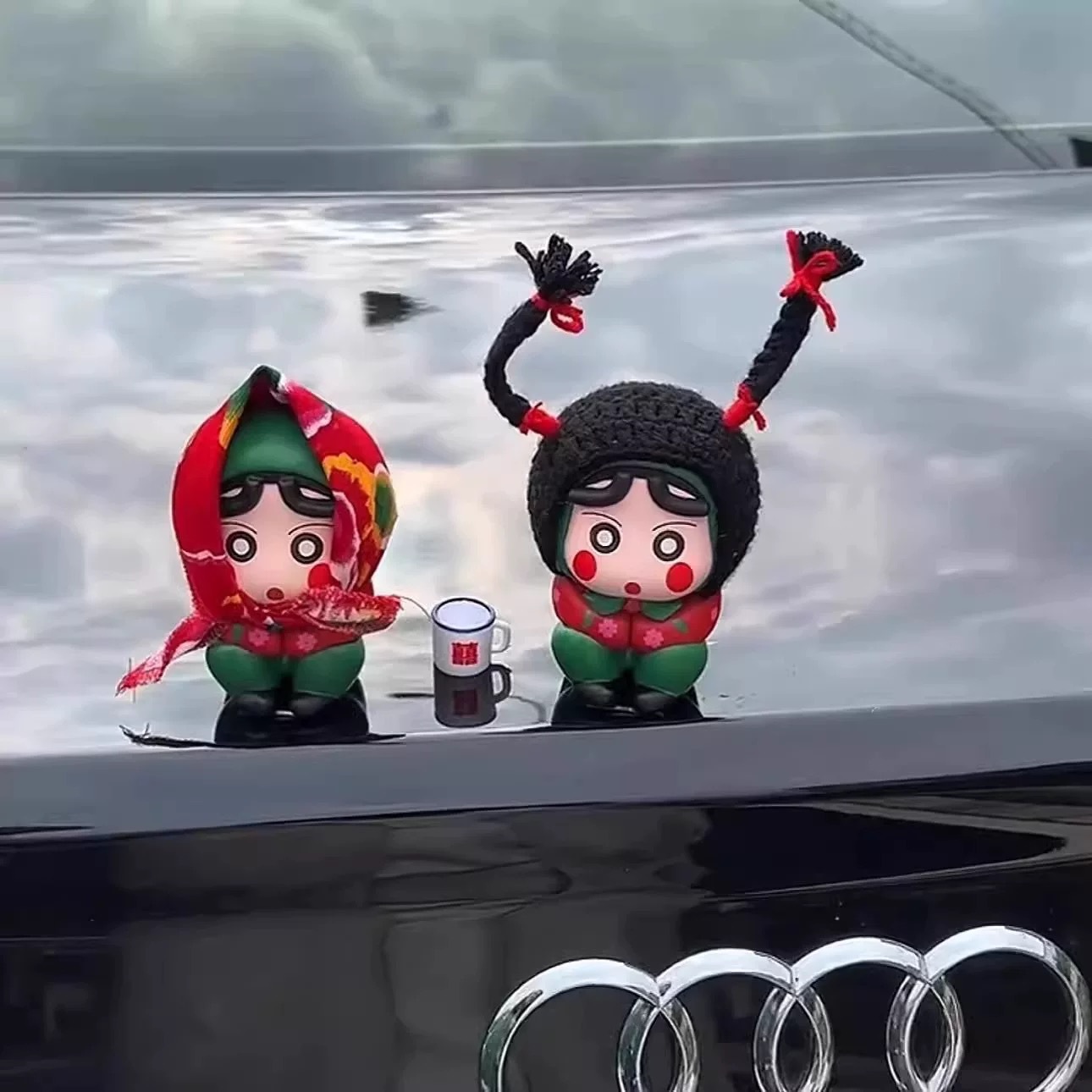 車の置物翠花村花クレヨン小新創意車載ネット赤装飾電気自動車のおかしなぬいぐるみストラップ