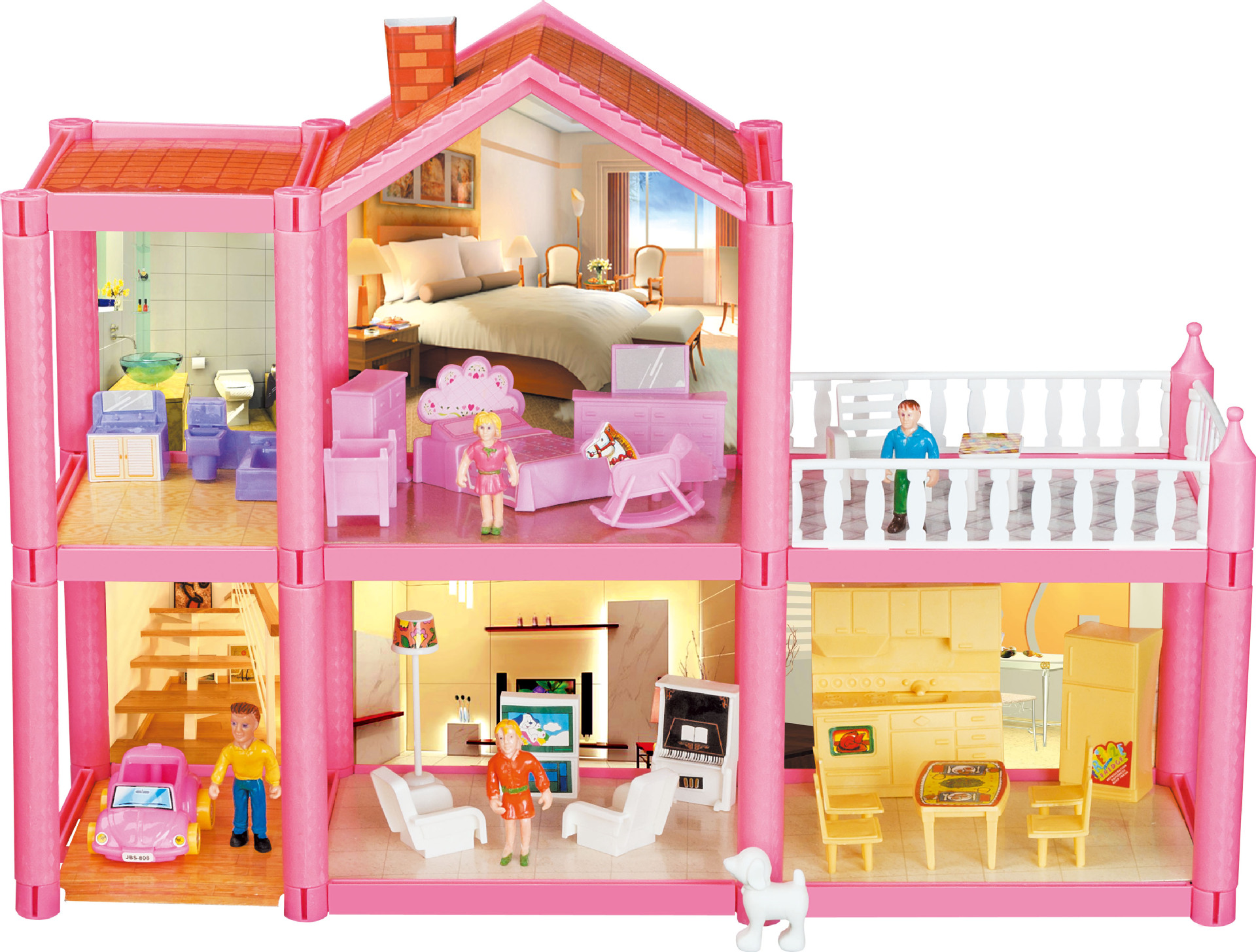 アメリカの二階建て別荘の木製子供たちのままごと人形屋のお姫様の部屋の親子交流玩具の女の子をシミュレーションした