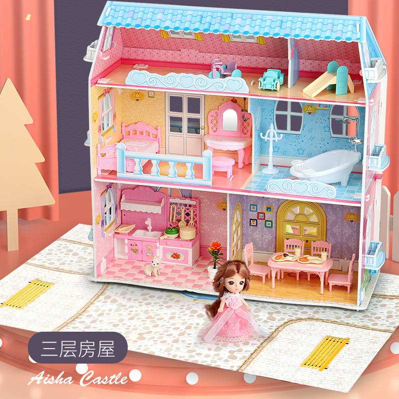 子供のまごとのおもちゃの家の3dの立体は王女の城の女の子の板紙の折り畳みを詰めて家の模型を詰めます。