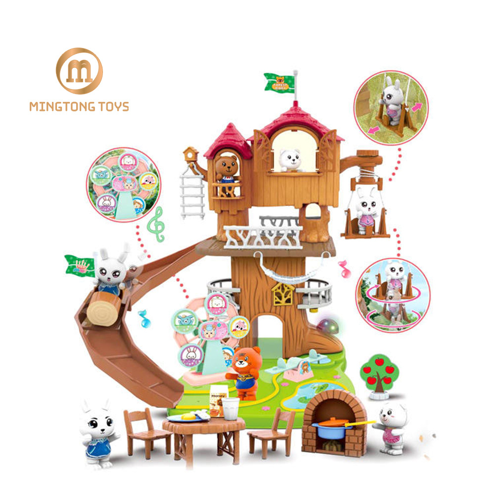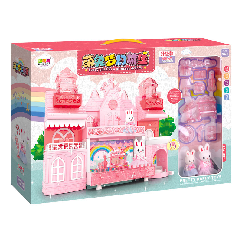 ままごと昇降はしご二重城別荘玩具5515親子交流萌え兎公仔音楽パーティーケース