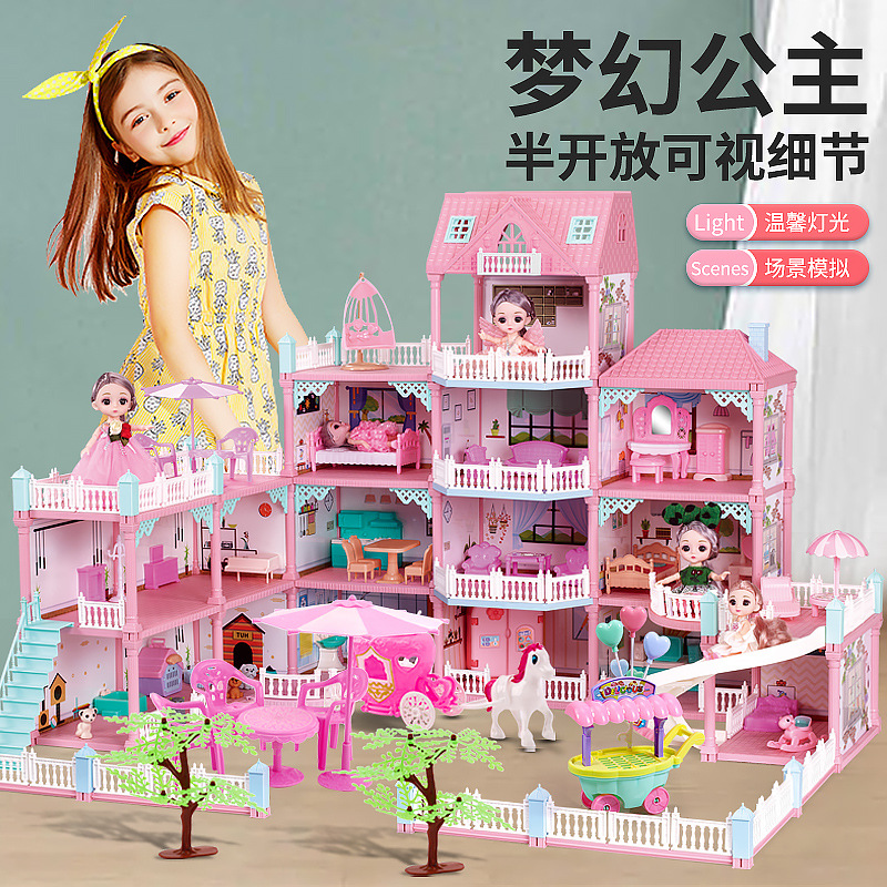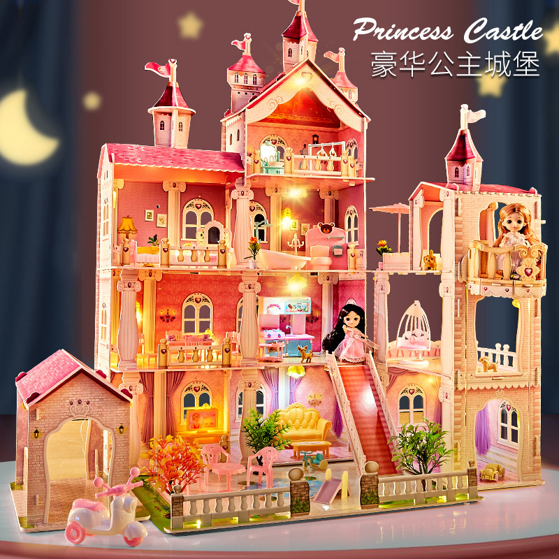国境を越えた子供たちが家を渡る人形屋玩具王女城別荘diyは台所の女の子4-6-8灯を組み合わせた