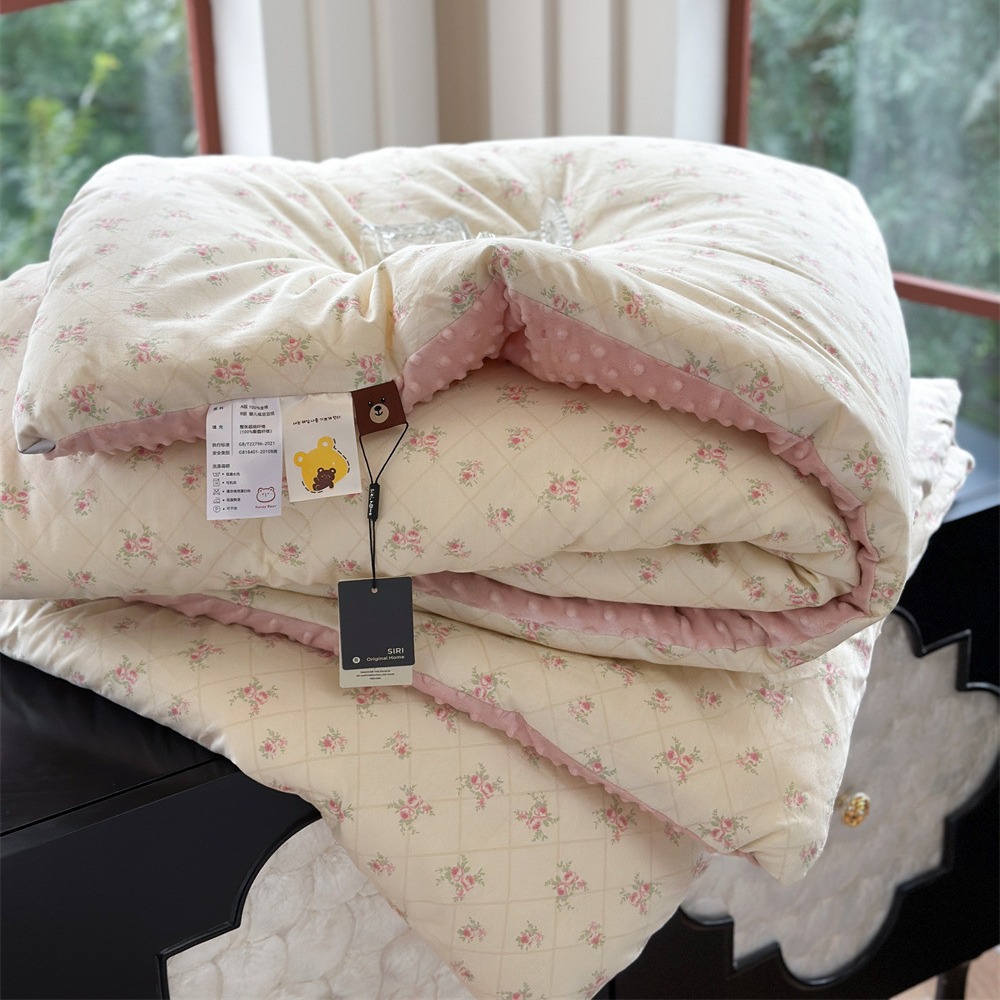 13372 綿漫画小花柄プリント春と秋のキルトなだめるビーニーキルト暖かいプラスベルベット冬のキルトコア