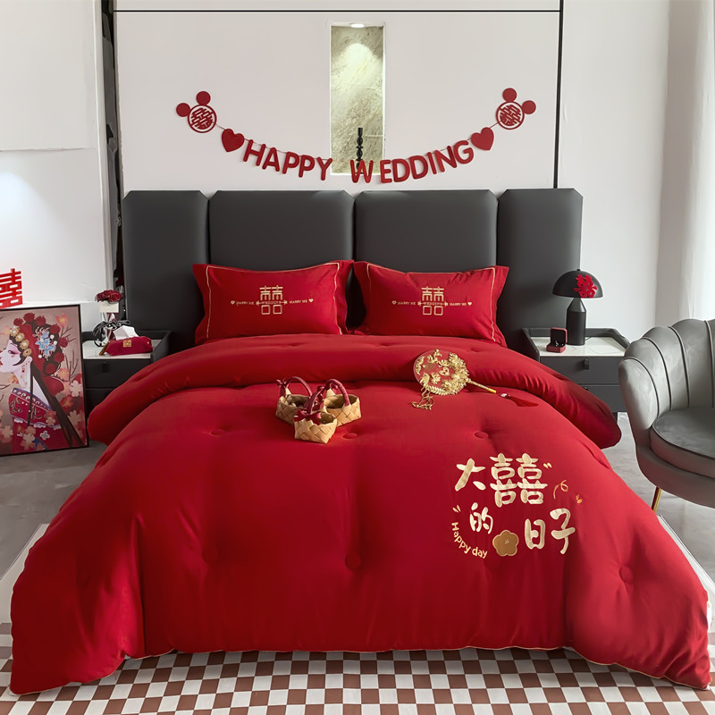 結婚式刺繍入り喜被原綿冬用掛け布団 赤い刺繍入り春秋用掛け布団 結婚祝い寝具ギフトバッグ包装卸売