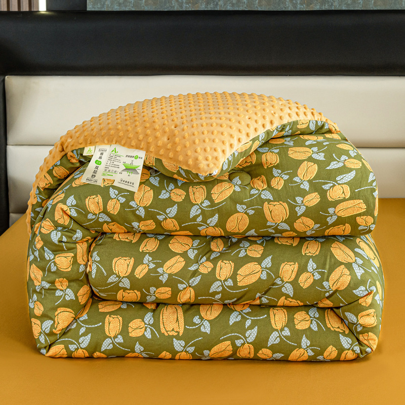 クロスボーダーフェザーベルベットキルト秋冬厚手シングルとダブルキルトフェザーベルベット特別価格シングルキルトコア大学生寮