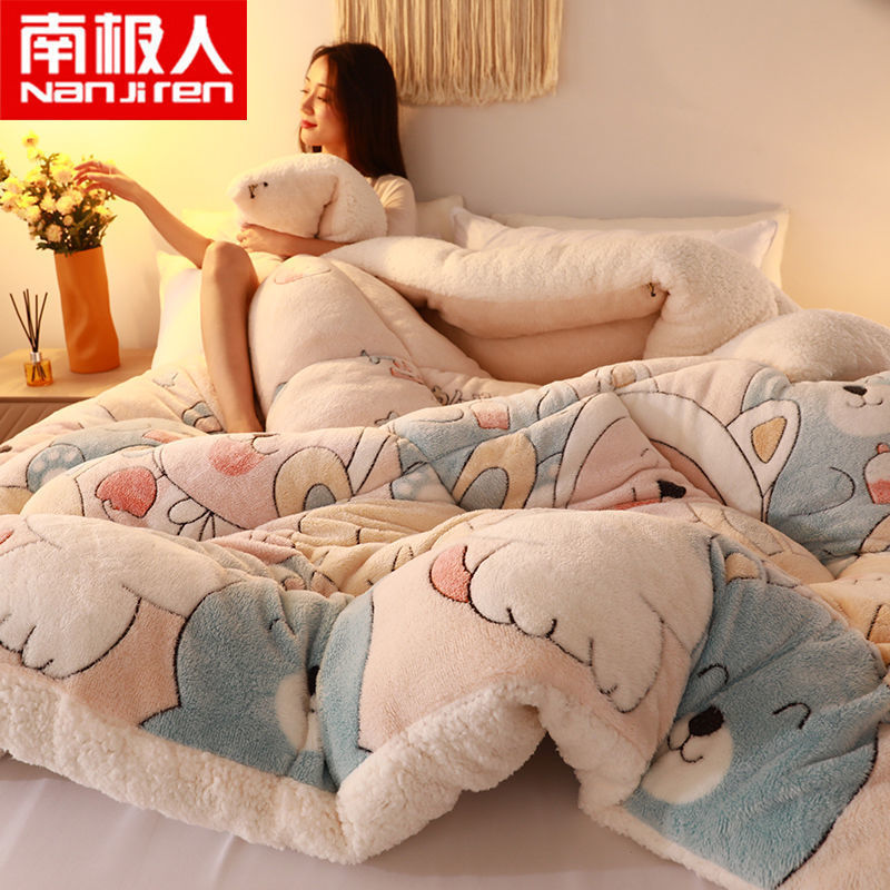 冬のラムズウール冬のキルト、厚く暖かいプラスベルベットキルトコア、ダブルキルト、冬のシングル寮ベッド