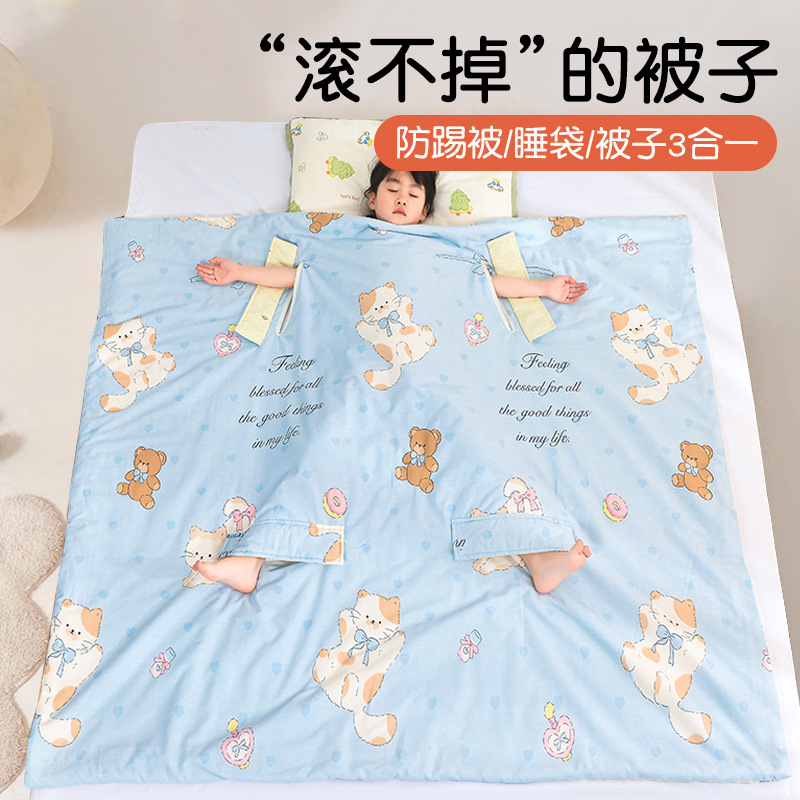 子供用アンチキックキルトアーティファクト、中型および大型子供用綿サマーキルト寝袋、洗濯機で洗える純綿エアコン薄型キルト2025